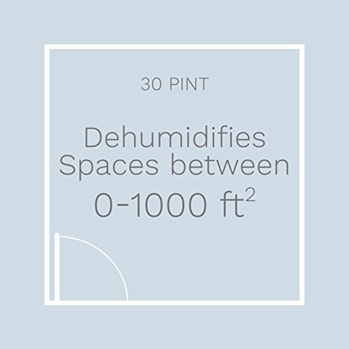 FOR ROOMS UP TO 1000 SQ FT - Eco dehumidifier measures 15.2 x 10.2 x 19.7 inches, has 0.8 gallon (3 liter) water tank capacity, removes up to 4 gallons (30 pints) of moisture from the air per day, and is recommended for indoor spaces up to 1000 square feet