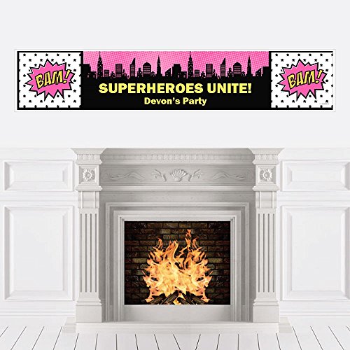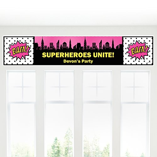 -. Feature : Custom BAM! Girl Superhero - Personalized Party Banner is 12" x 60" (1 ft by 5 ft). / P.R.Inted on premium-grade satin paper with a photo-like shine. / Perfect for a Birthday Party or Baby Shower Decorations. / Made in the USA.