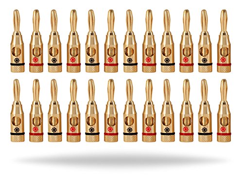 Product Description· 12pair/24 Open Set Screw Banana Plugs · Gold Plated · Red/Blue Gear Logos for Easy Channel Identification · Set Screw · Accepts 12 to 18 Gauge Speaker Wire0
