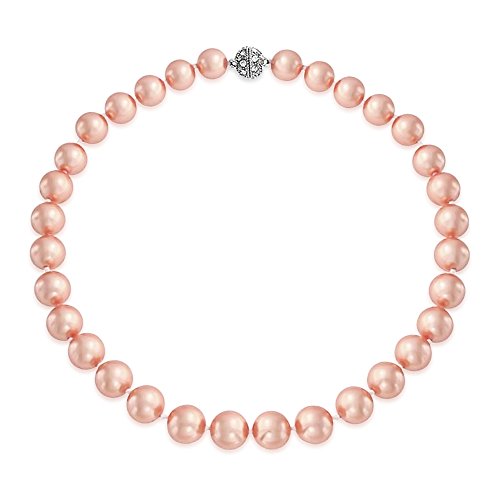 Take feminine to a whole new level with our pink Simulated Pearl necklace. We took the classic look of Simulated Pearl jewelry and updated it with ones that shine with a beautiful pale pink hue. Each shimmering round Simulated Pearl is 10mm, and this ultra glam strand even has a little bit of dazzle with a Crystal necklace clasp that screws together into a glittering ball shape. Our pink Simulated Pearl jewelry is the perfect way to stay pretty and polished during a night out. It also makes beautiful bridal jewelry for the bride who wants a little splash of pink to go with her ivory dress. Order one of our pink Simulated Pearl necklaces today and create a new timeless tradition.Feature