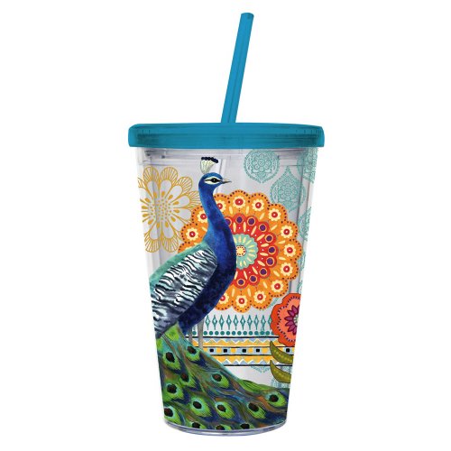 Proud Peacocks 17 oz. Insulated Cup with Straw