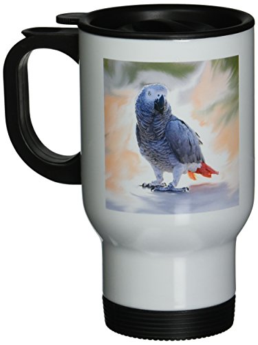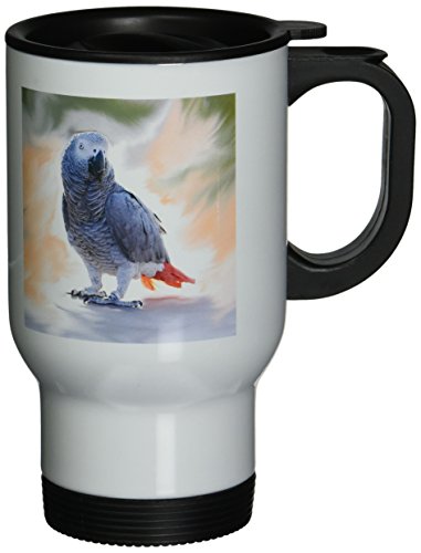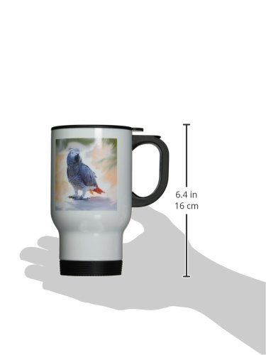 3dRose African Grey Parrot Travel Mug, 14-Ounce, Stainless Steel