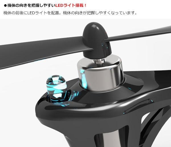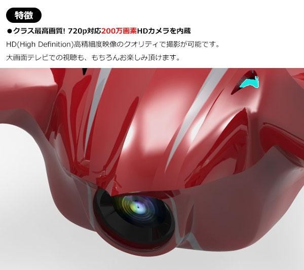 | セット内容 | 本体、2.4GHz/4ch送信機、LiPoバッテリー、ローターブレード(予備)、USB充電器、MicroSDカード(4GB)、PC用SDアダプター、ローター用工具、ロータープロテクター、取扱説明書 |