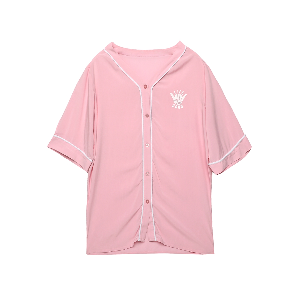 야구복 핏의 패턴과 가슴, 등판의 스포티한 원포인트가 있는 제품 입니다.
