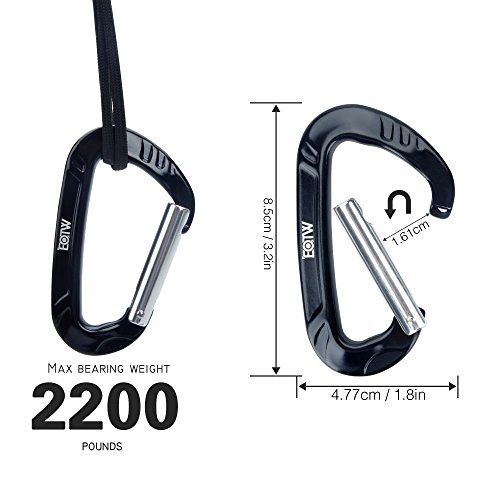 4. Easy to get on and off manageability with one hand. Compact functional design make it hooks work tightly but will not clip your skin. Heavy duty to withstand over 1200KG of force. Perfect for use with your hammock suspension system, clipping camping gear and accessories to your backpack and many other utility uses.