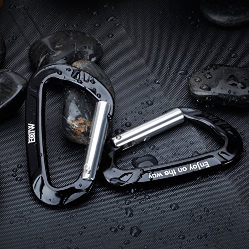 3. Made from High quality Aluminum Alloy and well coated without sharp edge, lightweight but sturdy. Nicely constructed solidly built with sleek compact design, a great Carabiner that locks into place and tightly.