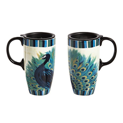 -. Title : Cypress Home Ceramic Resplendent Peacock Latte Travel Cup, 17 ounces
