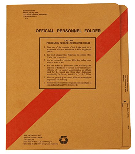 -. Feature : Standard Form 66, 7540-00-222-3442, 10 x 11-3/4" (folded), HD TWO 2-3/4 IN. PRONG FASTENERS / Reinforced 1" high tab for easy title viewing. Contains 30% Recovered Material, Which Includes 30% Postconsumer Material / SF 66: Official Personnel Folder. / bonded fasteners are the ultimate solution to fastener issues, including paper tears, finger cuts and excessive fastener crinkling / Employee Record File Folders, Straight Cut, Personnel, Letter
