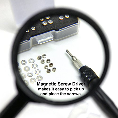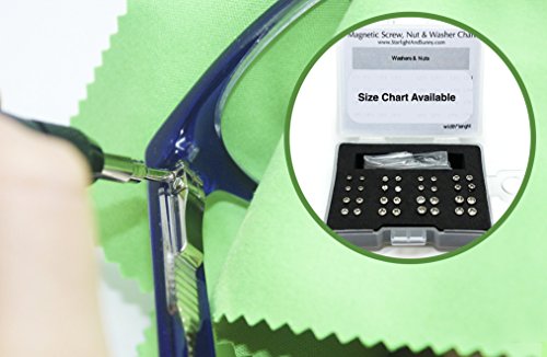 SURPRISE! WIDE RANGE OF SCREW DIAMATERS & LENGTHS: Dual purpose magnetic screwdriver enhances ease of repair. No need for tweezers or steady hand. Magnifying glass makes use of wide assortment of screws, nut and washers a breeze.