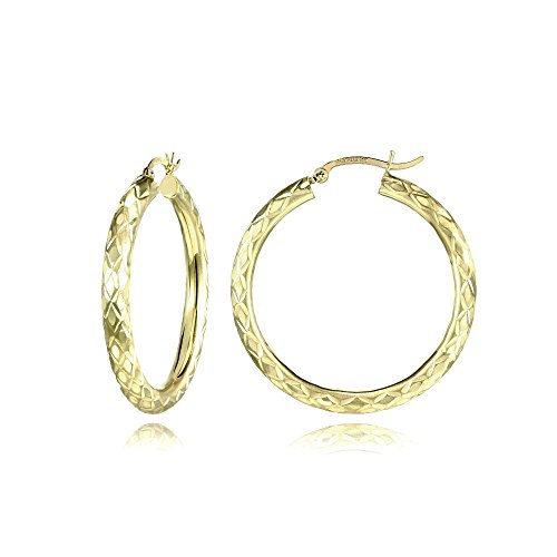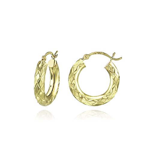 These earrings display a pair of diamond cut hollow tube hoops. They are lightweight, have a comfortable fit and are an ideal size for daily and evening wear. These hoop earrings are high quality fashion earrings, crafted of 14k yellow gold and secure with click-top back findings.