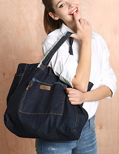 1.Vantoo shoulder bag is made of high quality denim materials,which is comfortable for you to wear. 2.Four practicial pockets and large capicity for you to store your things. 3.Each handbag includes one small purse in it. 4.Size:14"x13"x5" (inches)
