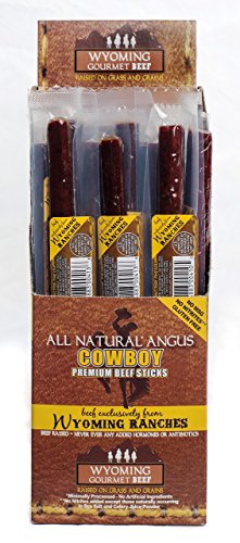 ReleaseDate : 2014-10-24 Studio : Wyoming Gourmet Beef Publisher : Wyoming Gourmet Beef Binding : Grocery Product Description Wyoming Authentic Products, based in Cody, Wyoming near Yellowstone National Park, features?Wyoming Gourmet All Natural Angus Beef. It's a branded, specialty beef company that leverages the rich ranching heritage of Wyoming with cattle born, raised and fed exclusively on Wyoming ranches. The ranchers are proud of their high quality cattle and our products are all about them. The primary focus of our health-conscious company is to address the growing consumer concerns about the origin, quality, and safety of their food. We hope?Wyoming Gourmet Beef?will become your beef of choice for its nutritional benefits, delicious flavor, and rich western heritage. Wyoming Gourmet Beef Sticks are exactly what they claim to be?gourmet. Our premium Cowboy Hickory Smoked, Jalapeno and Ginger and Garlic Sticks will transport you to a cowboy campfire. Unlike other companies, we only use All Natural Angus USDA Select, Choice and Prime beef in our Sticks to bring you a nutritious, mouth-watering snack. There are No Hormones added, No Antibiotics, No Nitrites, No MSG, No Artificial Ingredients and all are Gluten Free. Choose a healthy and nutritious Beef Stick snack and savor the taste of the Real West in every bite. 0