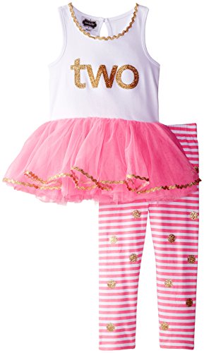 Sleeveless tank featuring metallic "Two" text and mesh tutu skirt