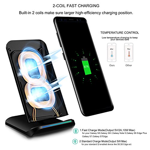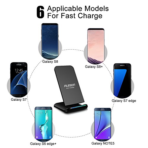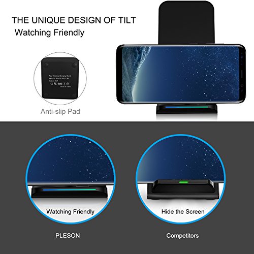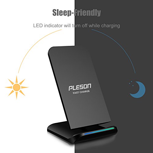 Fast Wireless Charger, PLESON Wireless Charger 2 Coils Cell QI Fast Wireless Charging Pad Stand for Samsung Galaxy S8 Plus S8+ S8 Galaxy S7 S7 Edge Note 5 S6 Edge Plus etc[Sleep-friendly]No AC Adapter