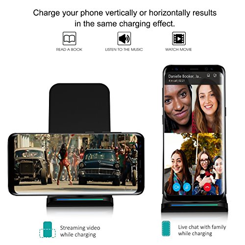 ✓ CHOOSE CHARGING STYLE: One of the greatest things about this wireless charger stand, besides the compact design and anti-slip mat, is its multifunctional role. Charge your mobile either horizontally or vertically. With the built-in over-voltage, under-voltage, temperature control, surge protection and short-circuit prevention features, we ensure ultimate safety for your smartphone.