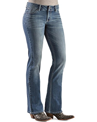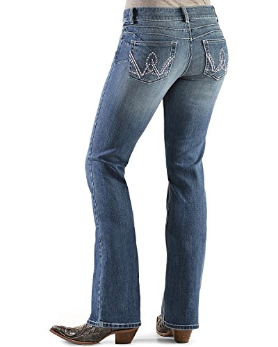 Show off your assets in the best way possible by wearing a pair of Booty Up jeans by Wrangler These high-tech bootcut jeans are designed to flatter your curves and help you look your best. This style features a medium rinse and "W" embroidery on the rear pockets.