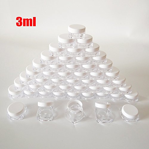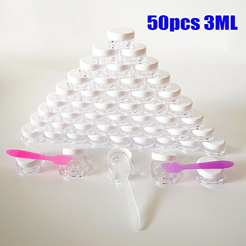 50pcs, 3Gram 3ml BPA free, Cosmetic Sample Empty Plastic Container, Square Pot White Screw Cap Lid, for Makeup, Eye Shadow, Nails, Powder, Jewelry,...