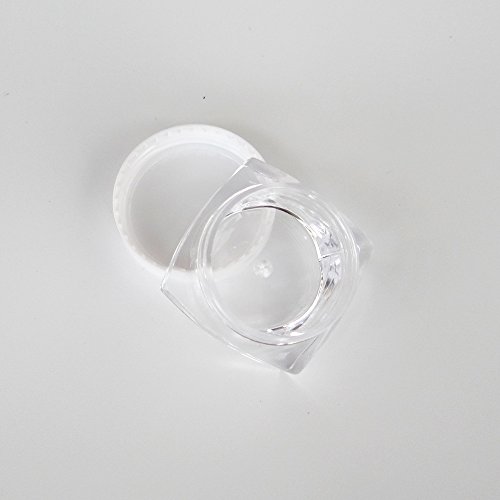 - Quantity - 50pcs 3 gram clear empty container square pot jar. Diameter is about 1.1 inch and the height is about 0.5 inch.