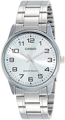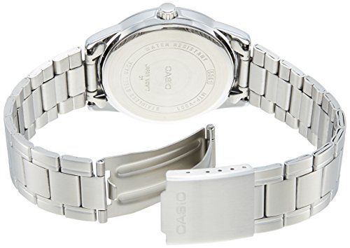Brand, Seller, or Collection Name:Casio Model number:EAW-MTP-V001D-7B Part Number:MTP-V001D-7 Model Year:2016 Item Shape:Round Dial window material type:Mineral Display Type:Analog Clasp:Fold-over-clasp Case material:Metal Case diameter:42 millimeters Case Thickness:8 millimeters Band Material:Stainless steel Band length:Men's Standard Band width:18 millimeters Band Color:Grey Dial color:Grey Calendar:No Special features:measures-seconds Movement:Quartz Movement Water resistant depth:30 Meters