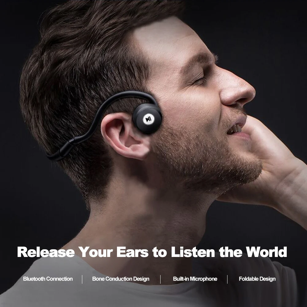 Bone Conduction Design: The sound transmits through the bone to auditory nerve, no need to put into ear, no eardrum damage, good for user to advoid ear disease and hearing losing.