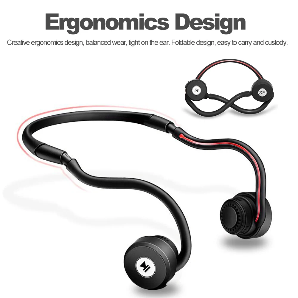 B2 Foldable Bone Conduction Headsets Bluetooth 4.0 Wireless Outdoor Sports Earphone Headphone with Microphone