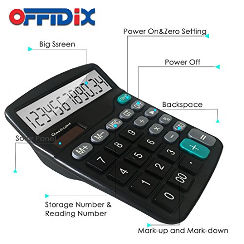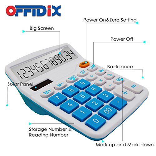 -. Binding : Office Product -. Brand : OFFIDIX -. Feature : Energy saving: Solar Function works in daytime or even in the dim light without battery / 12 Digital: Allow large number calculations. / Comfort-fit design: Ergonomic design comfortable button, wide keyboard with raised keys and increased pressure sensitivity / Easy to carry: Handheld, perfect choice for office and home -. Label : OFFIDIX -. Manufacturer : OFFIDIX -. MPN : TEN0009-10 -. PartNumber : TEN0009-10 -. ProductGroup : CE -. ProductTypeName : CALCULATOR -. Publisher : OFFIDIX -. Studio : OFFIDIX -. Title : OFFIDIX Office Desktop Calculator, Solar and Battery Dual Power Electronic Calculator Portable 12 Digit Large LCD Display Calculator, Blue