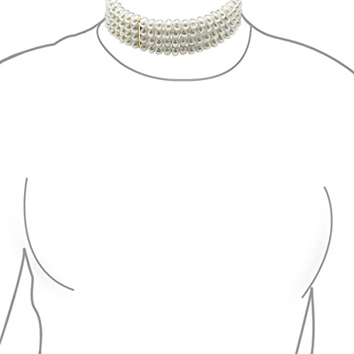 The style of our bridal freshwater cultured pearl choker necklace has long been a favorite among the House of Windsor. In fact, the late Royal often wore stunning and chic pearl collar chokers with many of her sensational ensembles. Our multistrand cultured pearl choker exudes style and grace in an elegant fashion. Our remarkable piece of bridal jewelry is made of four strands of 6mm button freshwater pearls that will drape your neck in a glorious fashion. Gold plated links ensure maximum functionality and security and give the piece a look of extra elegance. This stunning necklace will comfortably fit neck sizes between 13 and 17 inches because of its flexible quality. One of our chokers will make a great gift for Valentines Day jewelry or Mothers Day jewelry for that special stylish woman in your life.Feature