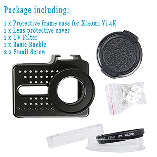 Action Camera Aluminum Protective Shockproof Frame Case Shell + UV Protector Lens Cap Cover for Xiaomi Yi 2 4K Accessories (Black)