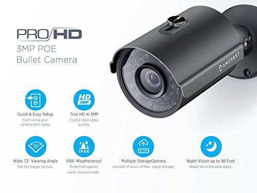 Superior HD 3 Megapixel Video Resolution at 20fps with latest Ambarella Chipset. Record and Playback using an Amcrest or ONVIF NVR, FTP, or Blue Iris. Optional Amcrest Cloud Video Recording service is also available.