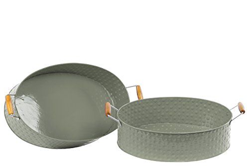 Urban Trends Metal Oval Tray with Wood Handle Dimpled Coated (Set of 2), Gray