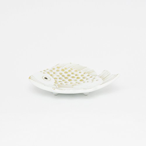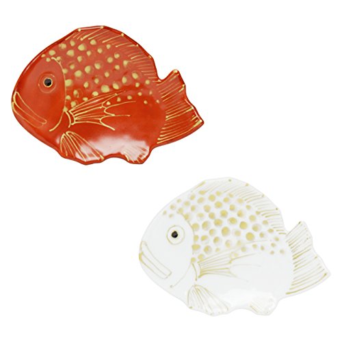 송화당 아리타산 도자기 도미형 작은 접시 2 개세트(주도(주홍 색칠) 금채/백자 금채) 8cm 복주가마 hkj0474