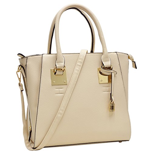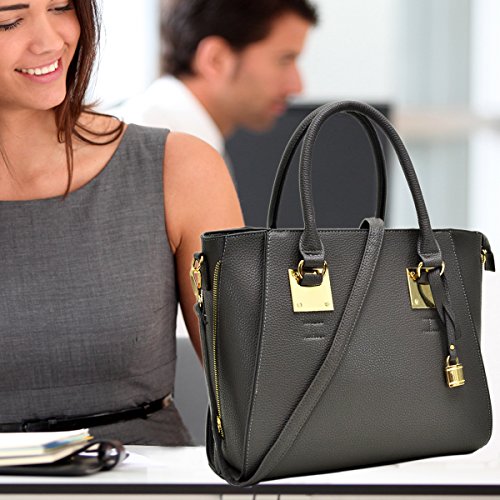 ❤ DESIGN: Constructed of tight pebbled leather, with a clean-lined, soft-but-structured shape, this classic satchel w/ matching wallet is a true go-anywhere bag! Side zipper décor and padlock deco hanging on the handle make this handbag be a thoughtful update to a timeless silhouette.