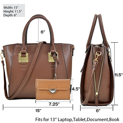 ❤ DETAILS: It is a perfect handbag (15"W x 11.5"H x 6"D). Strap drop length: 6". Also can be used as a tote, shoulder bag, work bag, laptop bag, tablet bag, travel bag, school bag./ Wallet: size: 7.25"W x 4.5"H x 1"D, 6 credit card slots, 2 flat currency slots, transparent ID slot, exterior back zipper pocket, buckle snap closure.