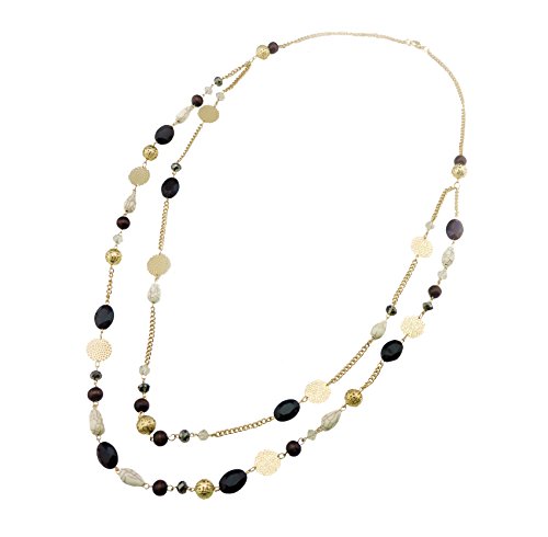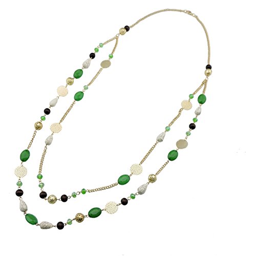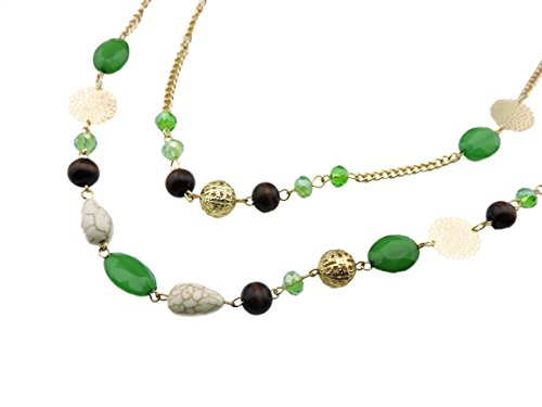 -. Title : BOCAR 14K Gold Plated Link Chain 2 Layer Crystal Wood Acrylic Colorful Women Party Long Necklace Gift