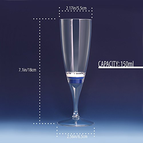 - PREMIUM QUALITY COMPLETELY SAFE: Use with confidence, as the flutes are made with food-grade plastic and the FDA safety approval makes them 100% safe to use. Don't put your own health at risk! BPA-Free plastic material means there are no adverse effects on human health. Extremely durable and shatterproof material allows you to maximize your enjoyment with the glasses