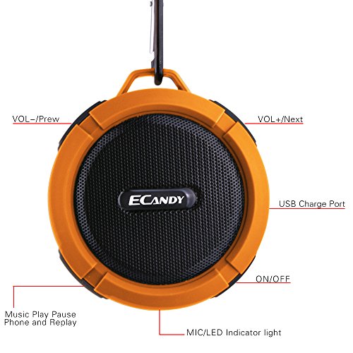 Ecandy Wireless Bluetooth 3.0 Outdoor/Shower Speaker,/Handsfree Portable Speakerphone with Built-in Mic, Shockproof Waterproof Dustproof Control Buttons and Dedicated Removable Suction Cup Design for Showers, Bathroom. Compatible with Smartphones,Tab