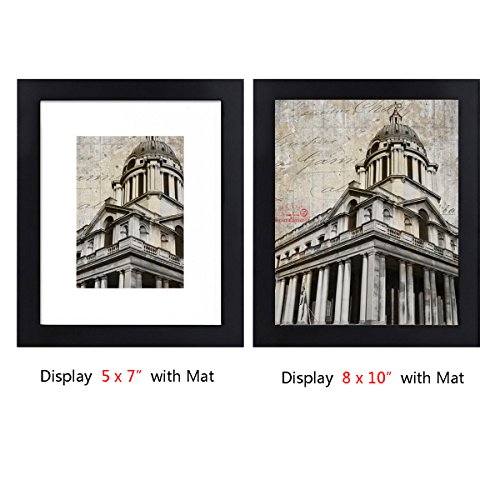 Black Picture Frames 8x10 inch,Anti-Corrosion Wood Photo Frame to Display 5x7in with Mat Photo or 8x10in Without Mat Photo,Wall or Table Top Decor