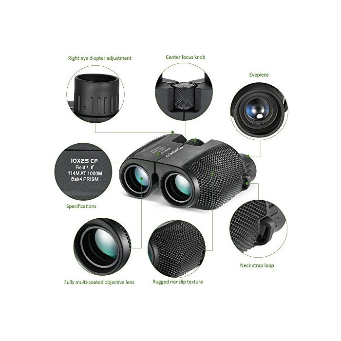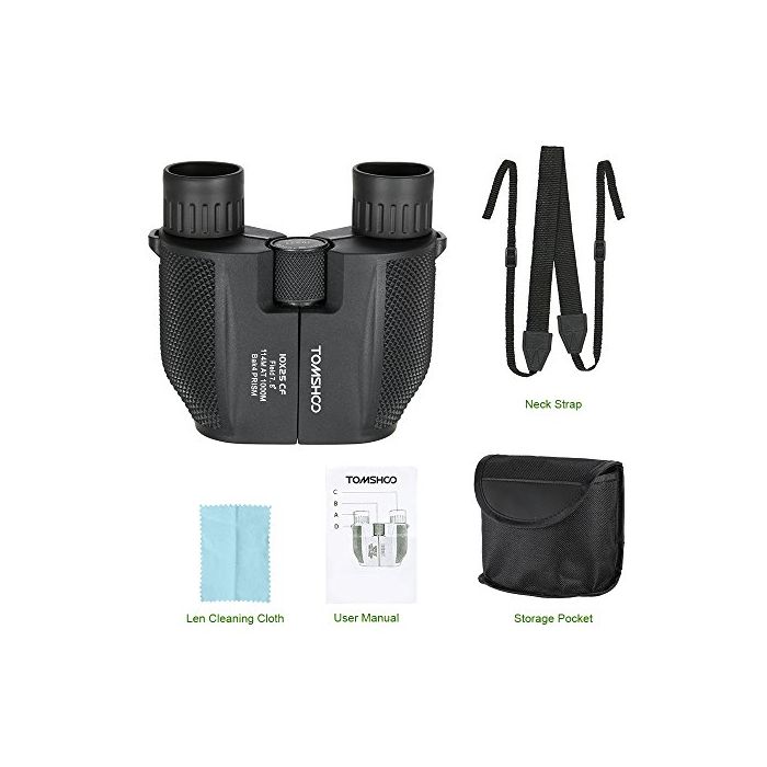 TOMSHOO 쌍안경 망원경 10배 25mm대물 렌즈 Bak4 녹색막 콤팩트 방수 경량 아웃도어 스포츠 포켓 스코프버드워칭 콘서트 라이브 여행 아이 기프트