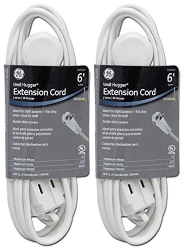 General Electric 50360 2 Pack 6ft. 2-Outlet Wall Hugger Extension Cord, White