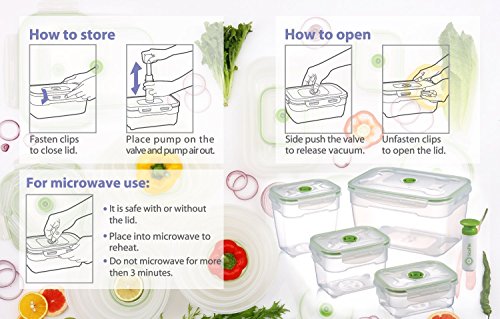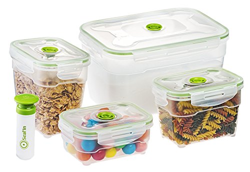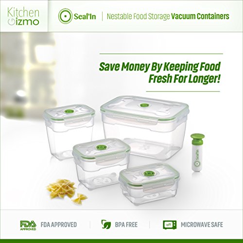 Seal'In Nestable Food Storage Vacuum Containers - Set of 4 - Vacuum Sealed, Microwavable and Dishwasher Safe