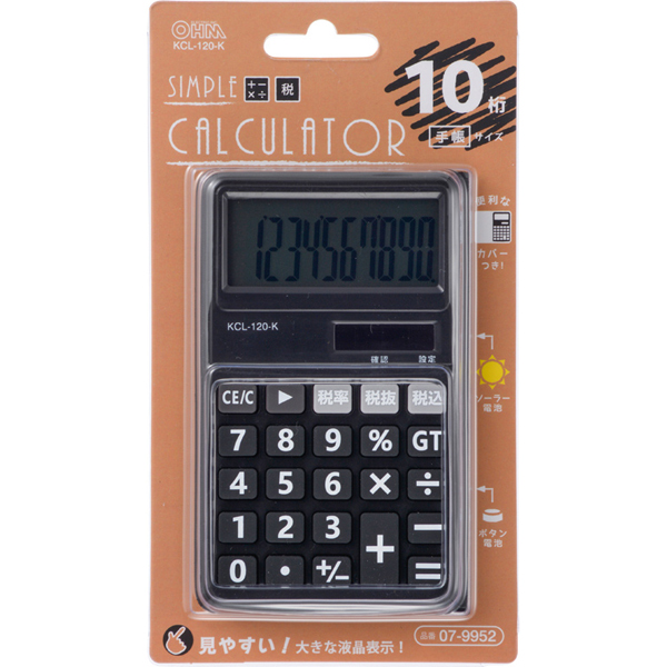 ●オーム電機 KCL-120-K 電卓10桁 手帳サイズ ブラック