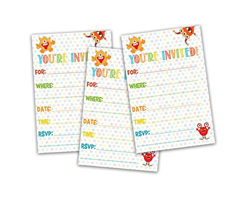 Monster Invitations - Fill In Style (10 Count + Envelopes) Boys