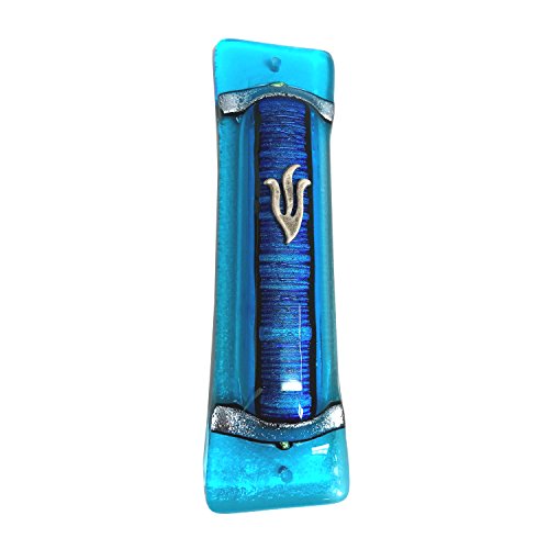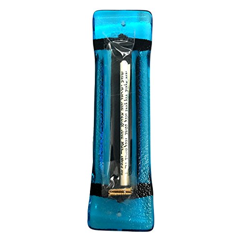 Acordian Blue Art Glass Mezuzah - Gift Box and Non-Kosher Scroll Included - HAND MADE IN THE USA