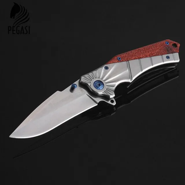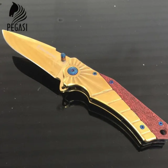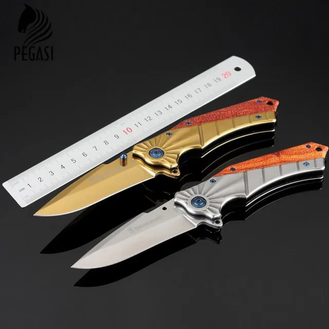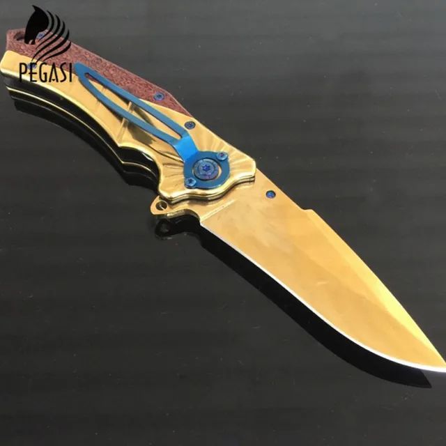 | [해외] 접이식 포켓 나이프 스틸 블레이드 나무 핸들 티타늄 나이프 야외 사냥 도구 캠핑 나이프 금속 접는 블레이드 나이프 |