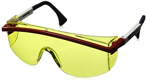 Uvex S1159 Astrospec 3000 Safety Eyewear, Red/White/Blue Frame, Amber Ultra-Dura Hardcoat Lens