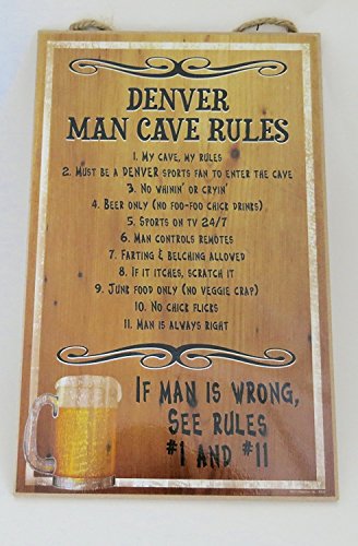 Denver, man cave rules, " if man is wrong, see rules #1 and #11", Wall Decor, Wood Wall Plaque, size 16" x 10". 2