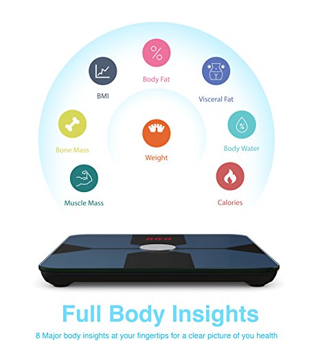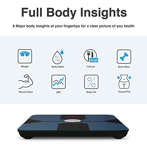 Product Description W8 Body Fat Weight Scale - Digital Bluetooth Connected w/ Fitness APP Body Composition Monitor: BMI, Visceral Fat, Muscle Mass, Body Water, Calories Bone Mass 0