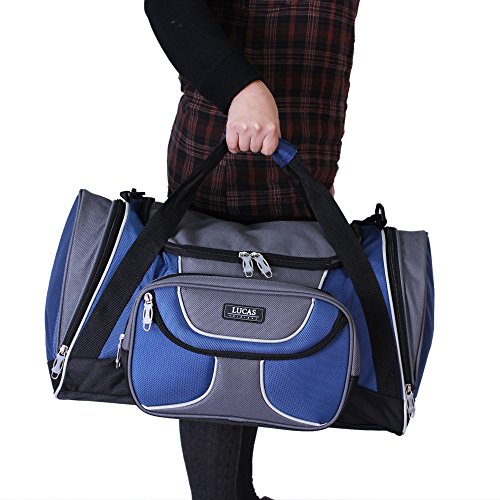 -. Brand : Lucas -. Department : unisex-adult (lage only) -. Feature : 2 front zippered pockets and 2 large zippered side pockets / Top hand-carry with velcro closure / U-shape zipped opening / Full lining / Adjustable shoulder strap with pad -. ProductGroup : Apparel -. ProductTypeName : LAGE -. Size : One Size -. Title : Lucas Lage Sport 20" Soft Expandable Soft Duffel