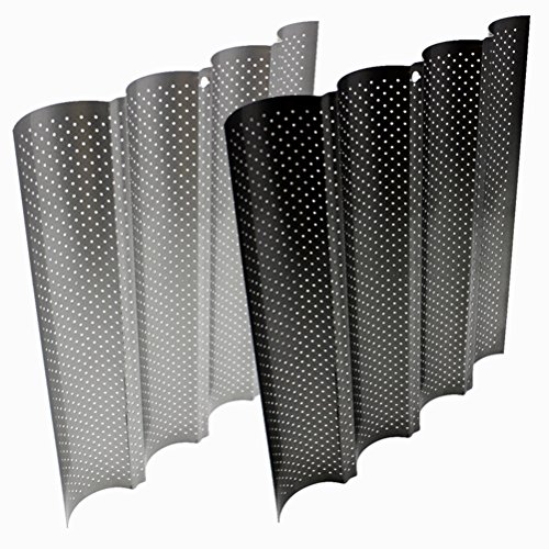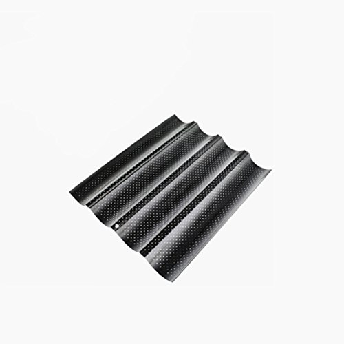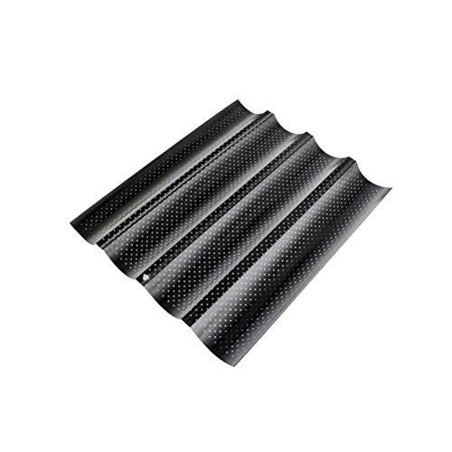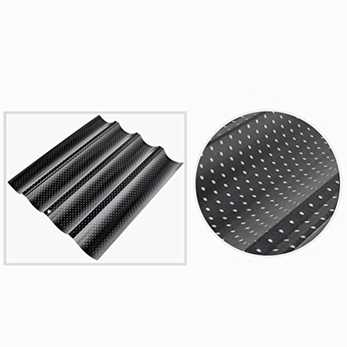 Package Including 1 * Non-Stick Perforated French Bread Pan Baguette Mold for Baking 4 Loaves Wave Baker (Black) 0