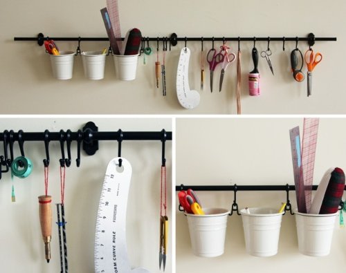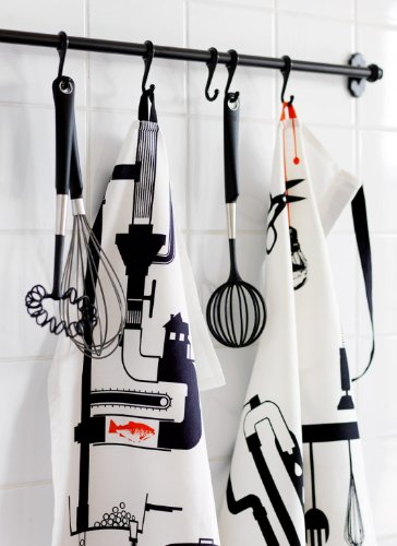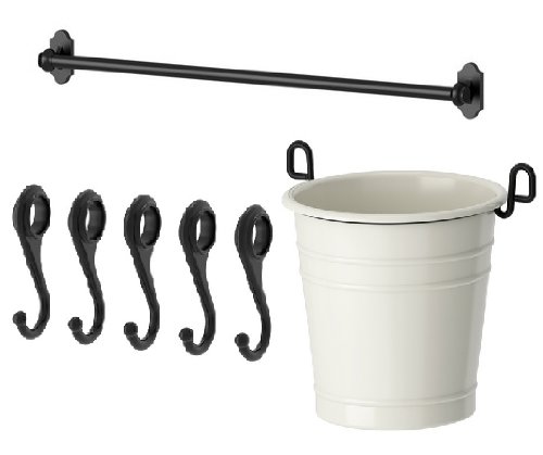 Ikea Steel Kitchen Organizer Set, 31-inch Rail, 5 Hooks, Flatware Caddy, Black, White